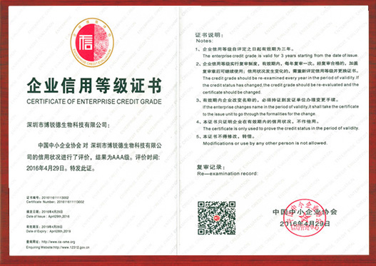 博锐德3A级企业证书