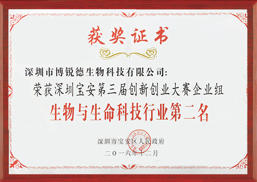 2016年12月宝安第三届行业第二名